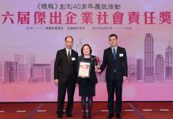第六屆兩岸四地傑出企業社會責任獎頒奬典禮於4月27日假香港JW萬豪酒店舉行,並由香港特別行政區行政長官梁振英先生到場主禮。其他出席嘉賓包括全國政協常委林樹哲先生與余國春先生、香港特區政府官員、中央政府駐港聯絡辦領導、兩岸四地著名的企業家、專家、學者以及《鏡報》的榮譽顧問等。評選顧問委員會由11位來自不同界別的專家組成,一同為兩岸四地的企業就「股東承擔」、「顧客承諾」、「社會聯繫」、「員工關愛」、「環境保護」及「領導能力」等方面的表現作出評分,表彰他們在履行企業社會責任的傑出貢獻。