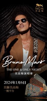 繼「火星人」Bruno Mars (布魯諾·馬爾斯) 在拉斯維加斯美高梅大酒店杜比現場表演劇場的演出火爆售罄之後, 這位屢獲殊榮的國際巨星即將登陸美高梅國際集團位於澳門的合作夥伴酒店——美獅美高梅。作為享譽全球的亞洲旅行目的地,澳門在文旅發展和海外營銷方面成績斐然。與此同時,娛樂演出也是澳門吸引國際遊客的關鍵因素之一。長期以來,美高梅不僅憑藉多領域的非博彩投資引領業界,更持續致力於將無與倫比的演出陣容引入澳門,為本地居民和全球遊客帶來震撼體驗,以此不斷提升澳門作為大型活動目的地的國際聲譽。2024年1月6日,只此一晚的特別限定—— Bruno Mars “The One & Only Night” 澳門演唱會將於美獅美高梅一樓平臺熱力開唱。屆時,「火星人」將成為2024年首位登陸美高梅的國際巨星,為澳門本地以及環球遊客奉上驚喜新年大禮。Bruno Mars美高梅唱會門票將於2023年12月9日公開發售,更多票務信息,還請持續關注www.mgm.mo。